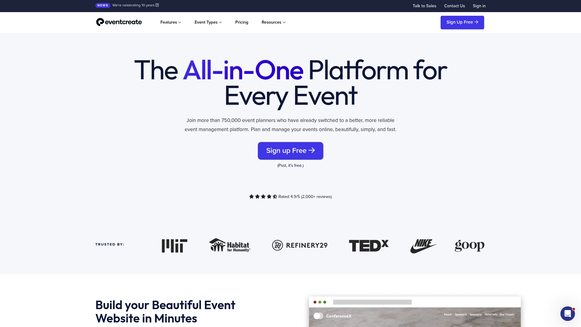 | EventCreate | Website creation, registration flows, e-commerce, attendee management | User-friendly, highly customizable without coding, strong customer satisfaction | Pricing transparency is limited, advanced features may require additional learning | Pricing listed on website |