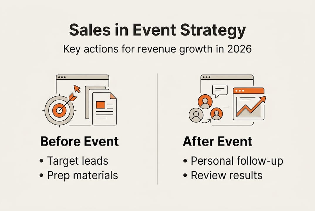 Sales teams drive targeted outreach before events, engage high-priority prospects on-site, and follow up quickly to convert event interest into pipeline and revenue. Aligning sales involvement with event tech and CRM unlocks significantly better ROI.